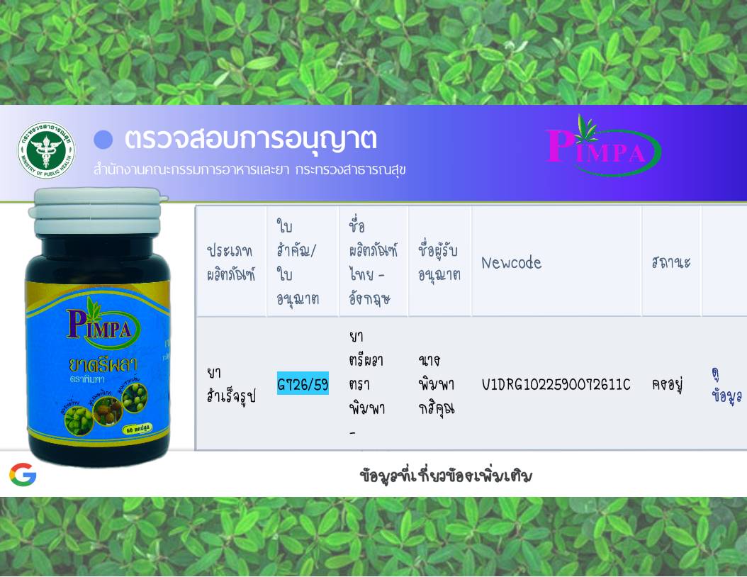 ขนาดบรรจุ 60 แคปซูล แคปซูลละ 400 มก.