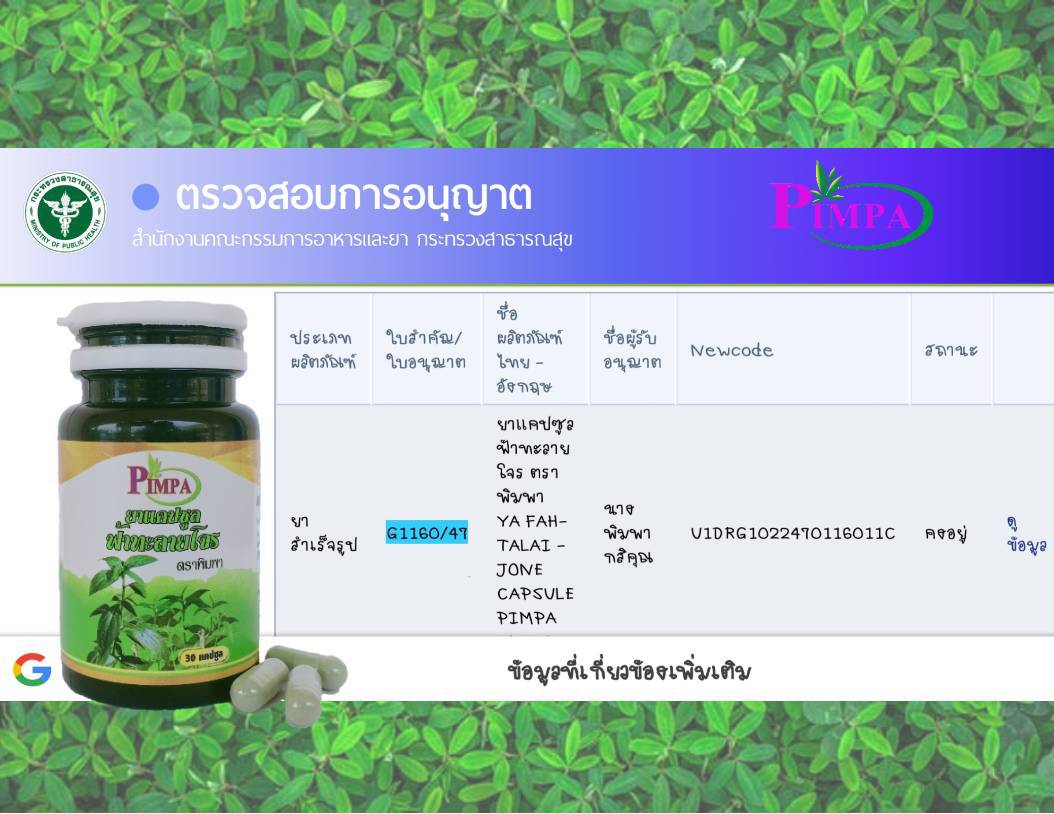 ยาแคปซูลฟ้าทะลายโจร ตรา พิมพา